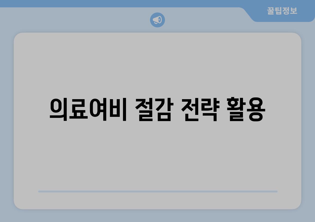 | 의료여비 절감 전략 활용 |
