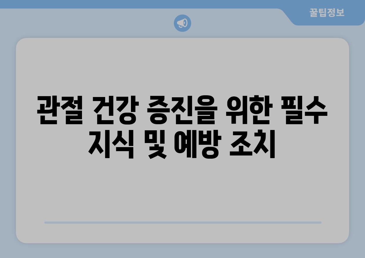| 관절 건강 증진을 위한 필수 지식 및 예방 조치 |