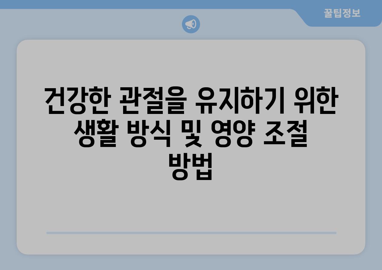 | 건강한 관절을 유지하기 위한 생활 방식 및 영양 조절 방법 |