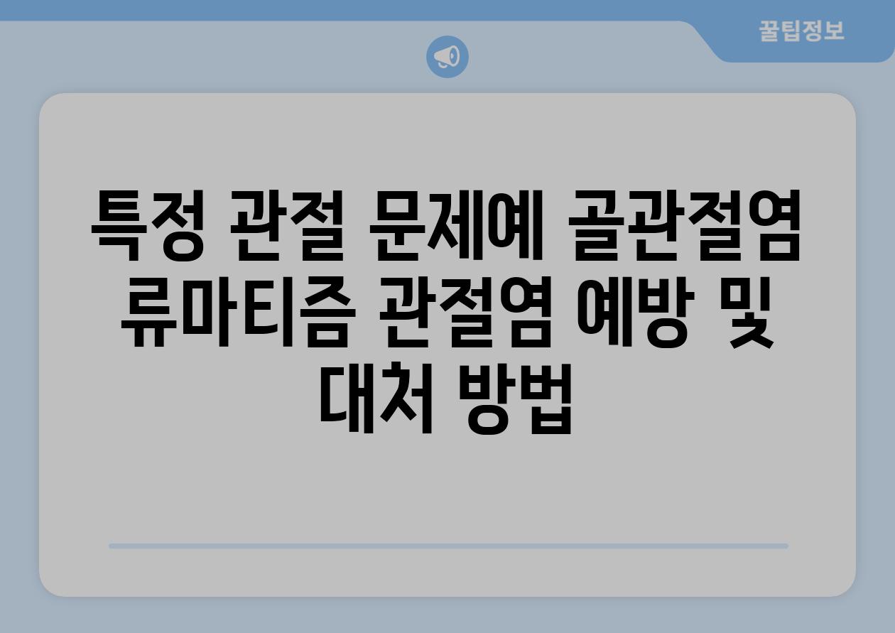 | 특정 관절 문제(예 골관절염, 류마티즘 관절염) 예방 및 대처 방법 |
