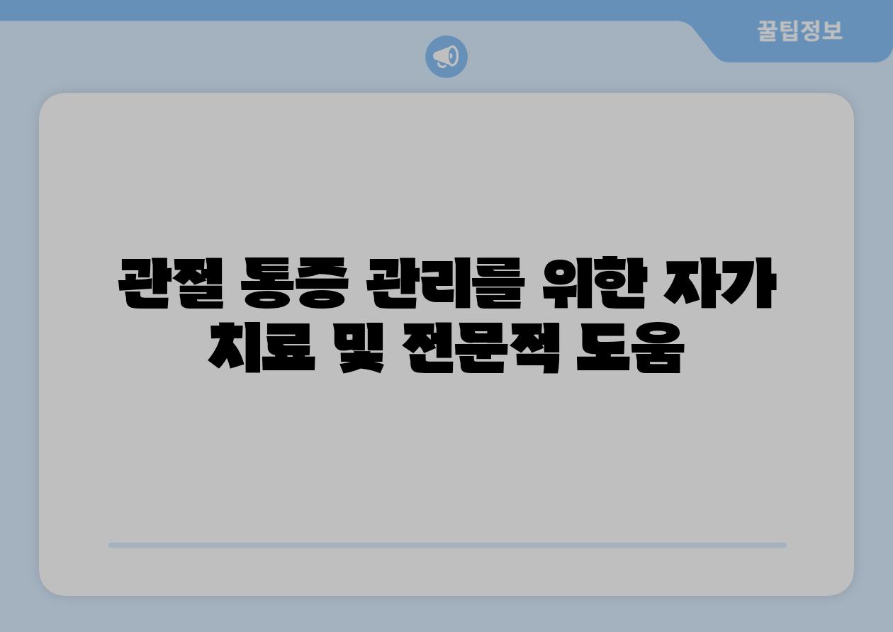 | 관절 통증 관리를 위한 자가 치료 및 전문적 도움 |