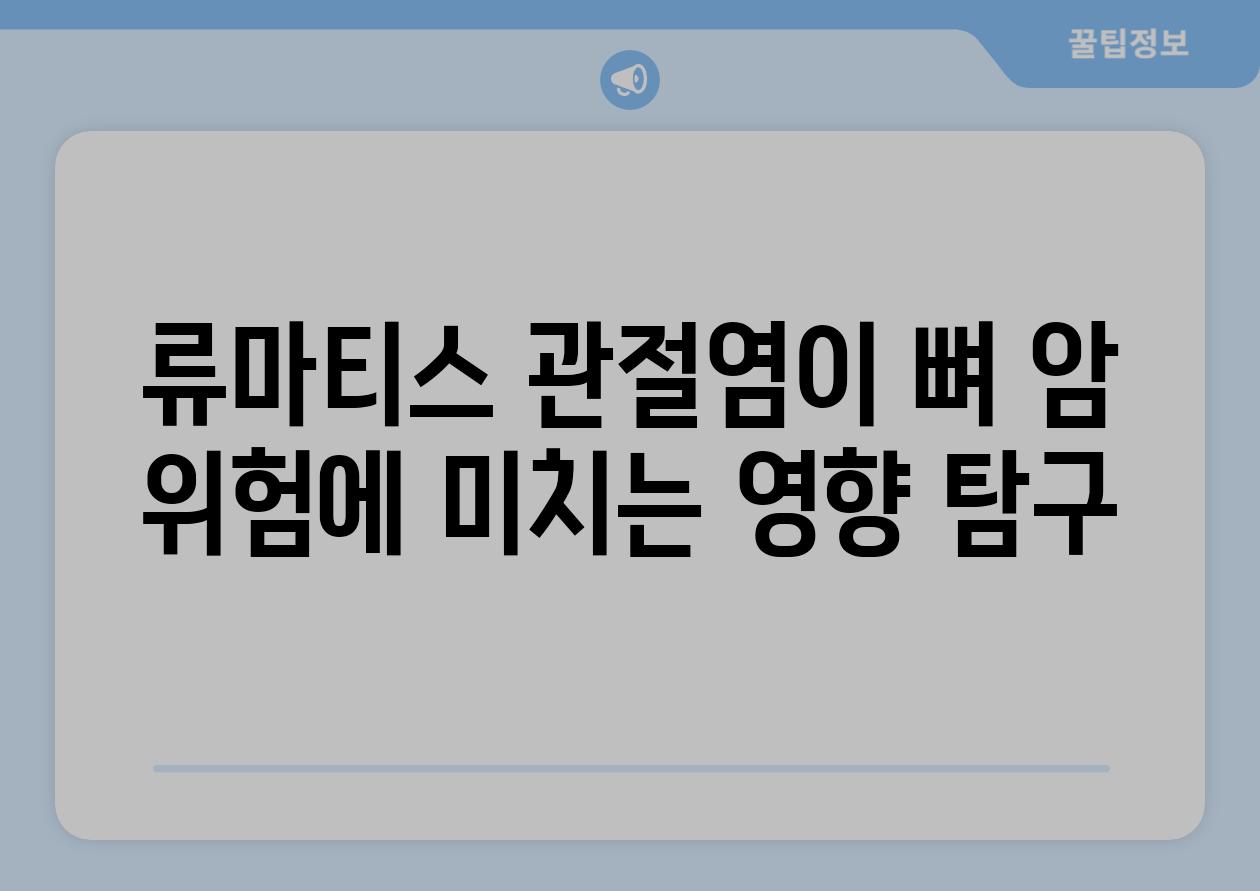 또 다른 연구에서는 류마티스 관절염을 앓는 환자의 뼈 암 위험이 류마티스 관절염이 없는 환자의 위험보다 96% 더 높다고 밝혀냈습니다. 이러한 연구 결과는 류마티스 관절염의 조기 진단과 적절한 치료가 뼈 암 위험 감소에 중요함을 시사합니다.