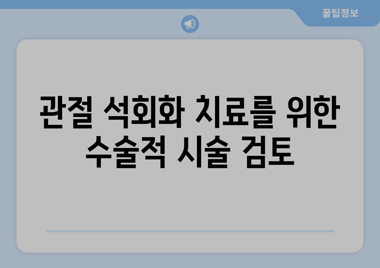 | 관절 석회화 치료를 위한 수술적 시술 검토 |