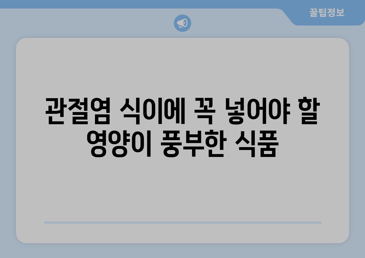 | 관절염 식이에 꼭 넣어야 할 영양이 풍부한 식품 |