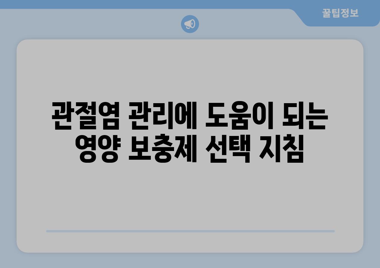 | 관절염 관리에 도움이 되는 영양 보충제 선택 방법 |