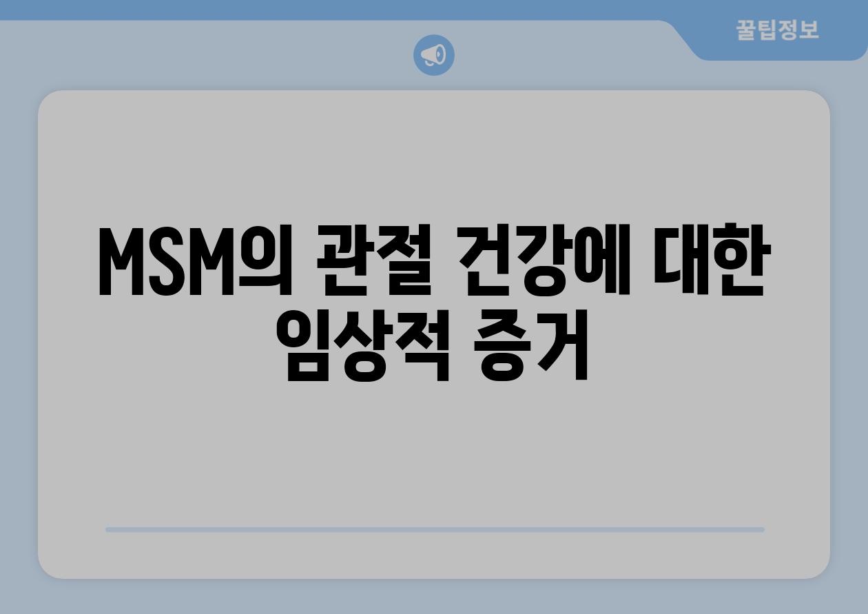 | MSM의 관절 건강에 대한 임상적 증거 |