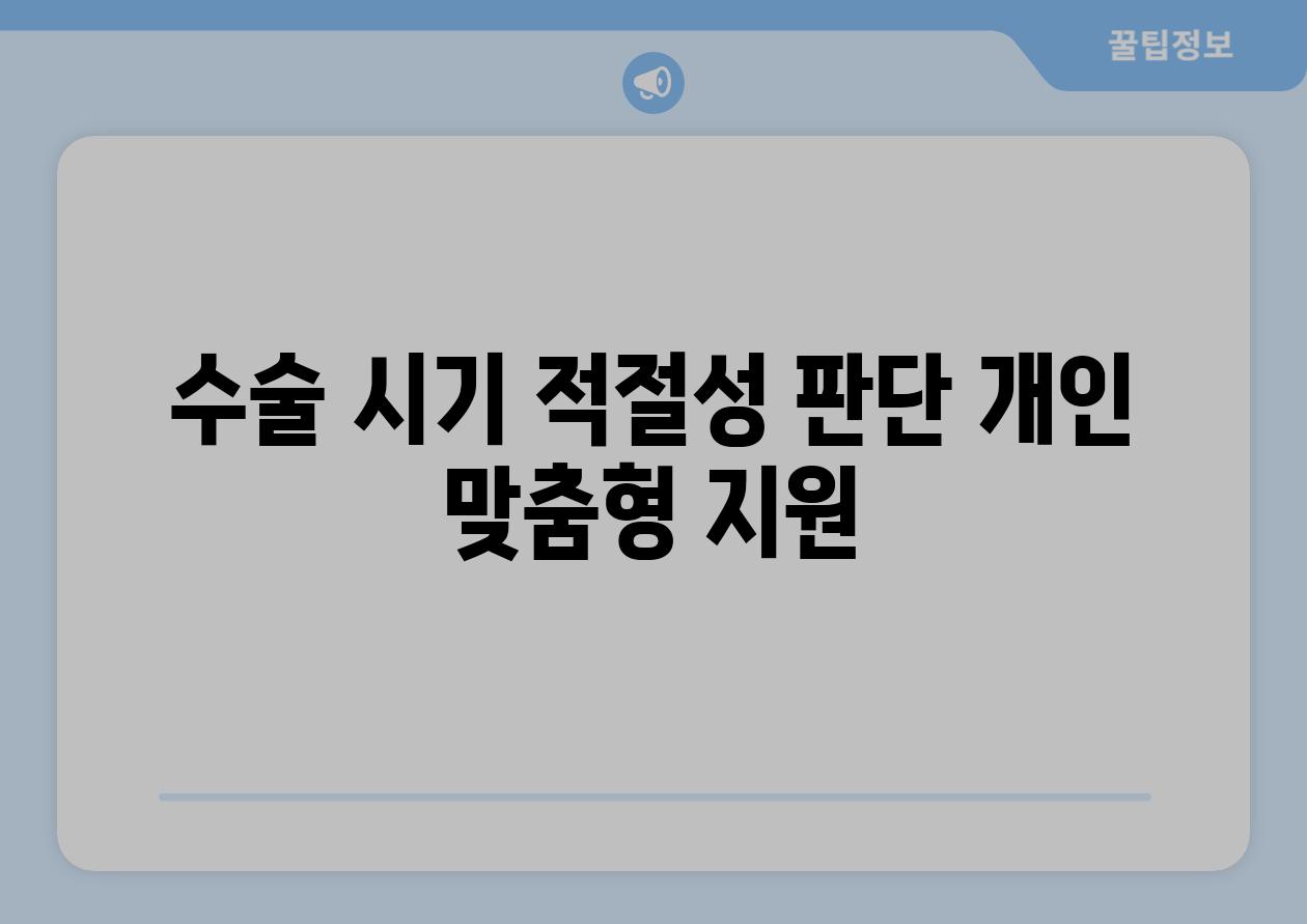| 수술 시기 적절성 판단, 개인 맞춤형 지원 |