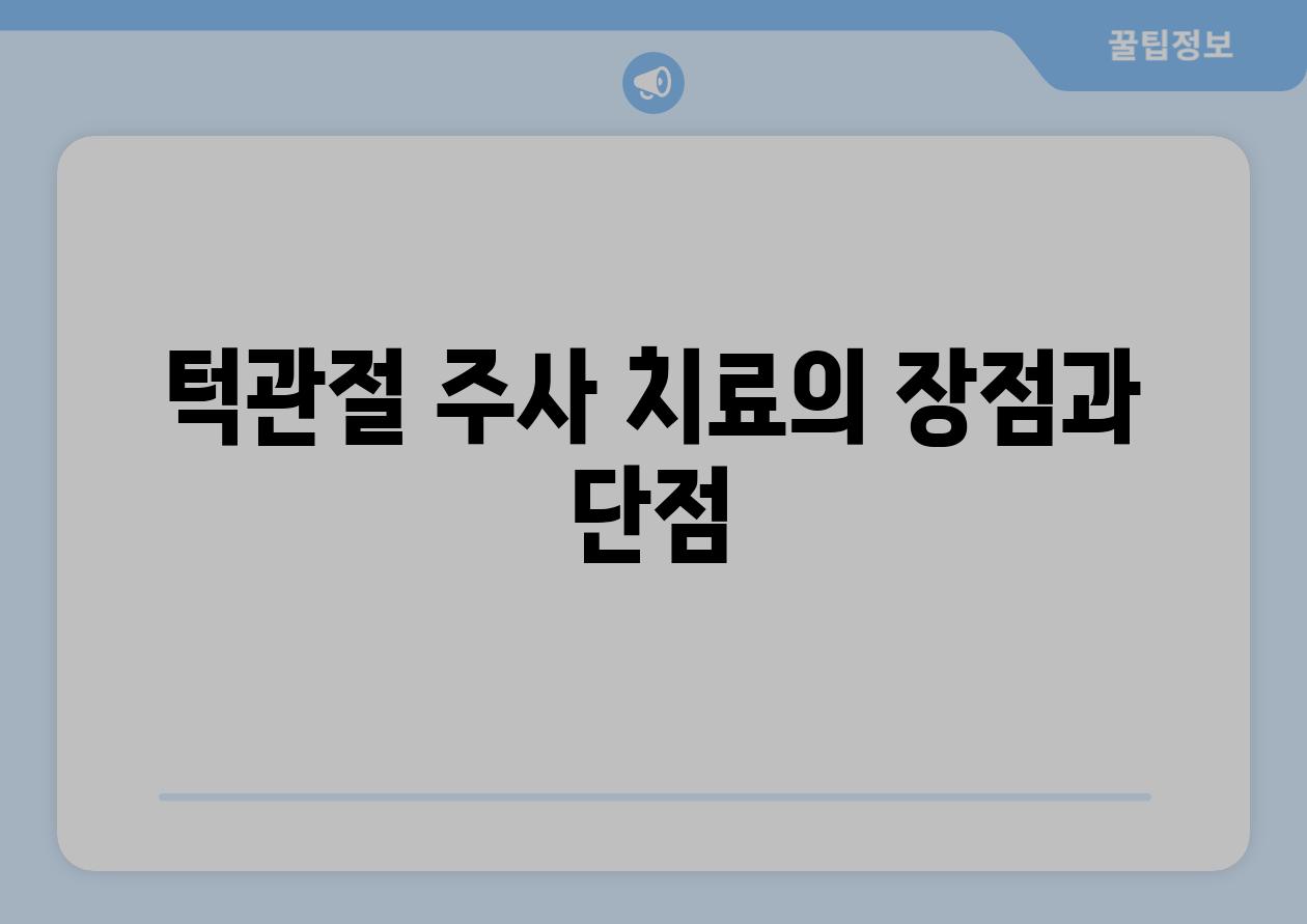 턱관절 주사 치료는 치료 효과가 높고 일시적으로 통증을 완화할 수 있는 것으로 알려졌습니다. 하지만 모든 치료와 마찬가지로 턱관절 주사 치료에도 장점과 단점이 있습니다.