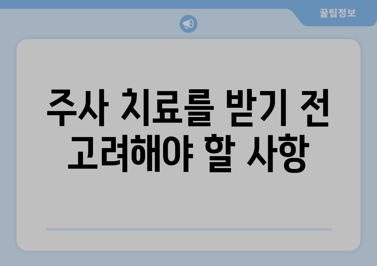 | 주사 치료를 받기 전 고려해야 할 사항 |