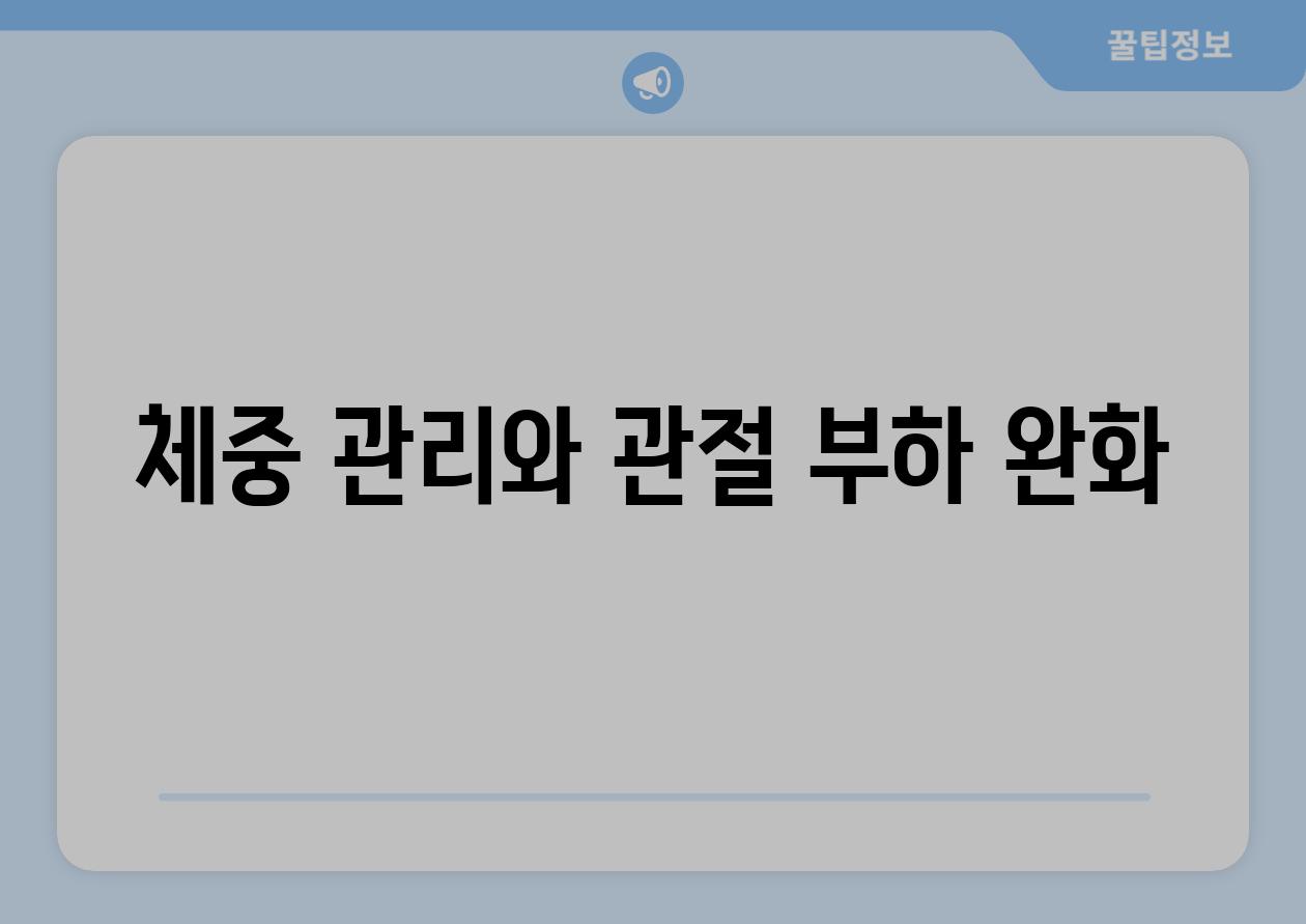 초과 체중이나 비만은 무릎과 고관절을 비롯한 관절에 추가적인 압력을 가할 수 있습니다. 체중을 줄이면 관절에 가해지는 부하가 줄어들어 통증, 염증 및 손상을 완화할 수 있습니다.