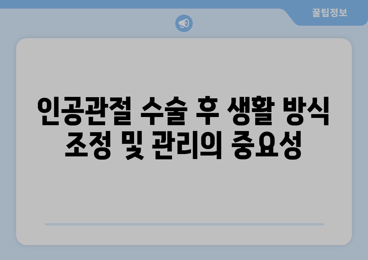 | 인공관절 수술 후 생활 방식 조정 및 관리의 중요성 |