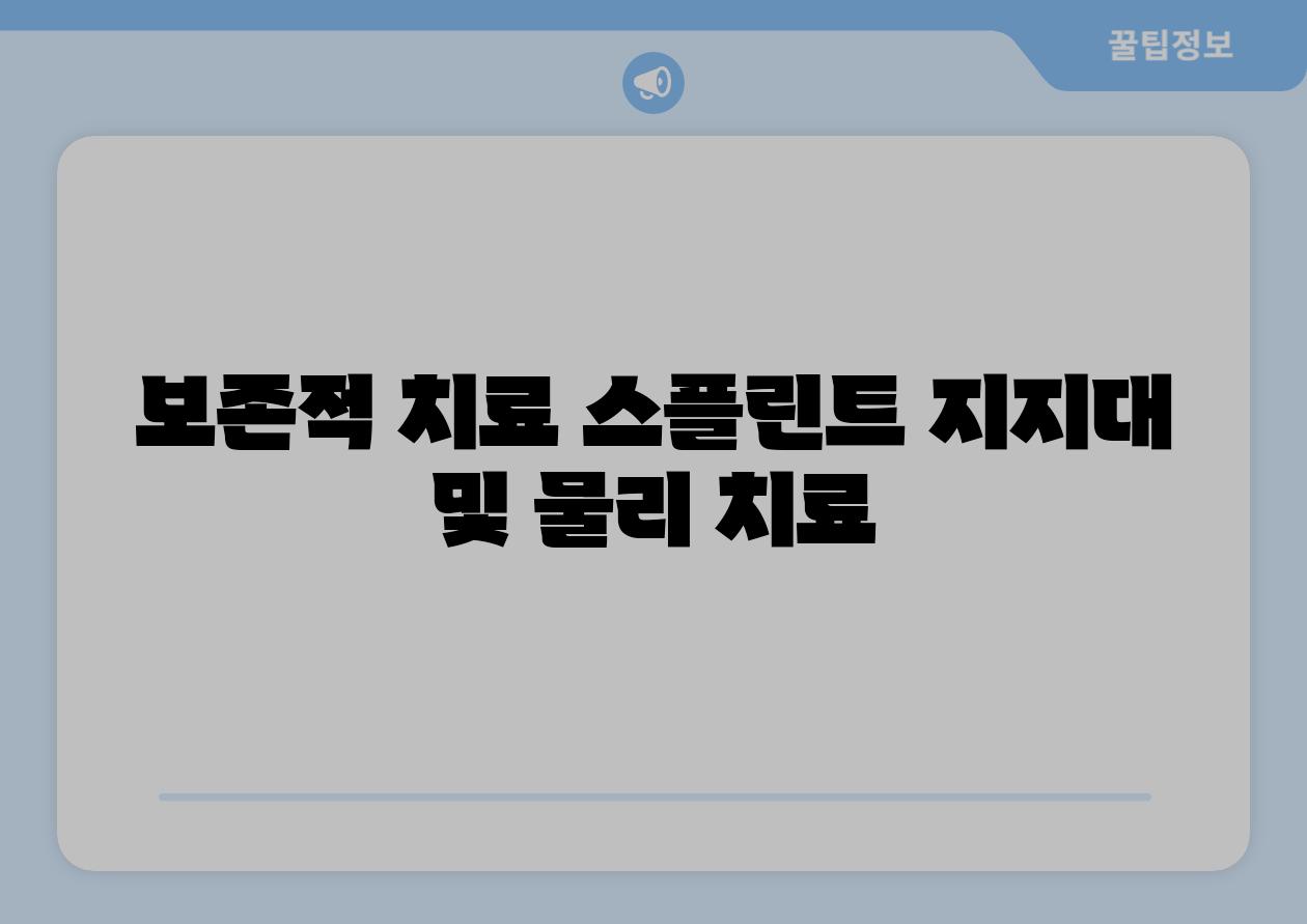 | 보존적 치료 스플린트, 지지대 및 물리 치료 |