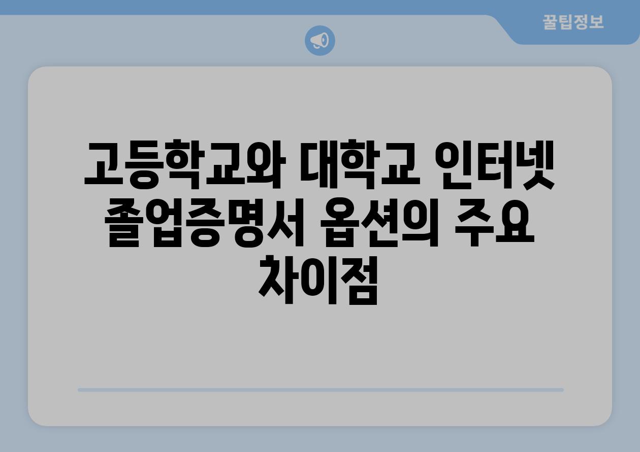 | 고등학교와 대학교 인터넷 졸업증명서 옵션의 주요 차장점 |