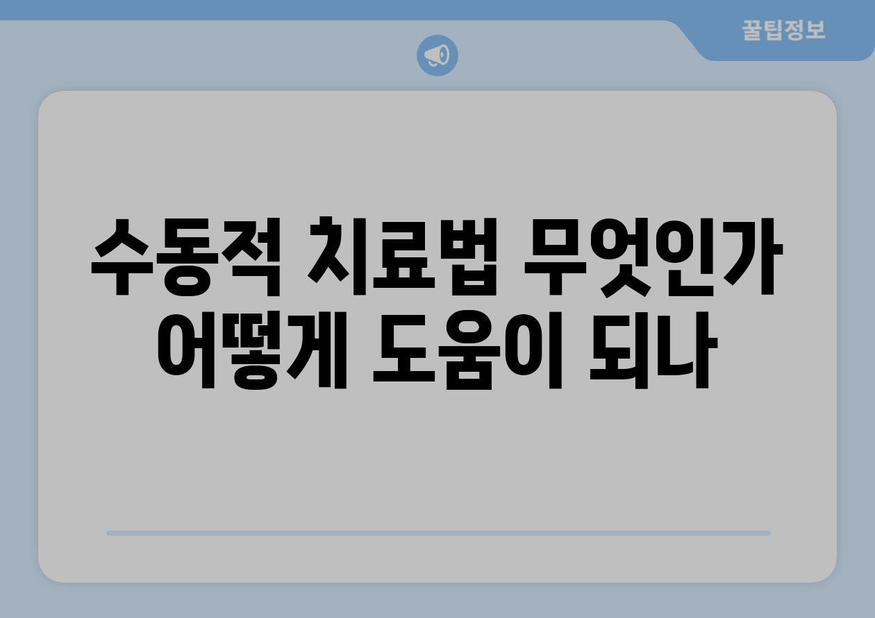 | 수동적 치료법 무엇인가? 어떻게 도움이 되나? |