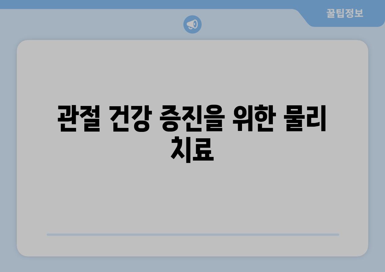 | 관절 건강 증진을 위한 물리 치료 |