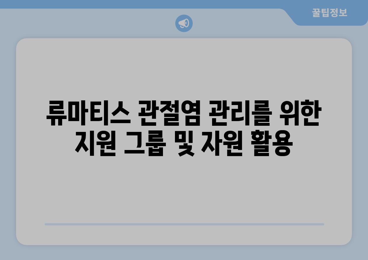 | 류마티스 관절염 관리를 위한 지원 그룹 및 자원 활용 |