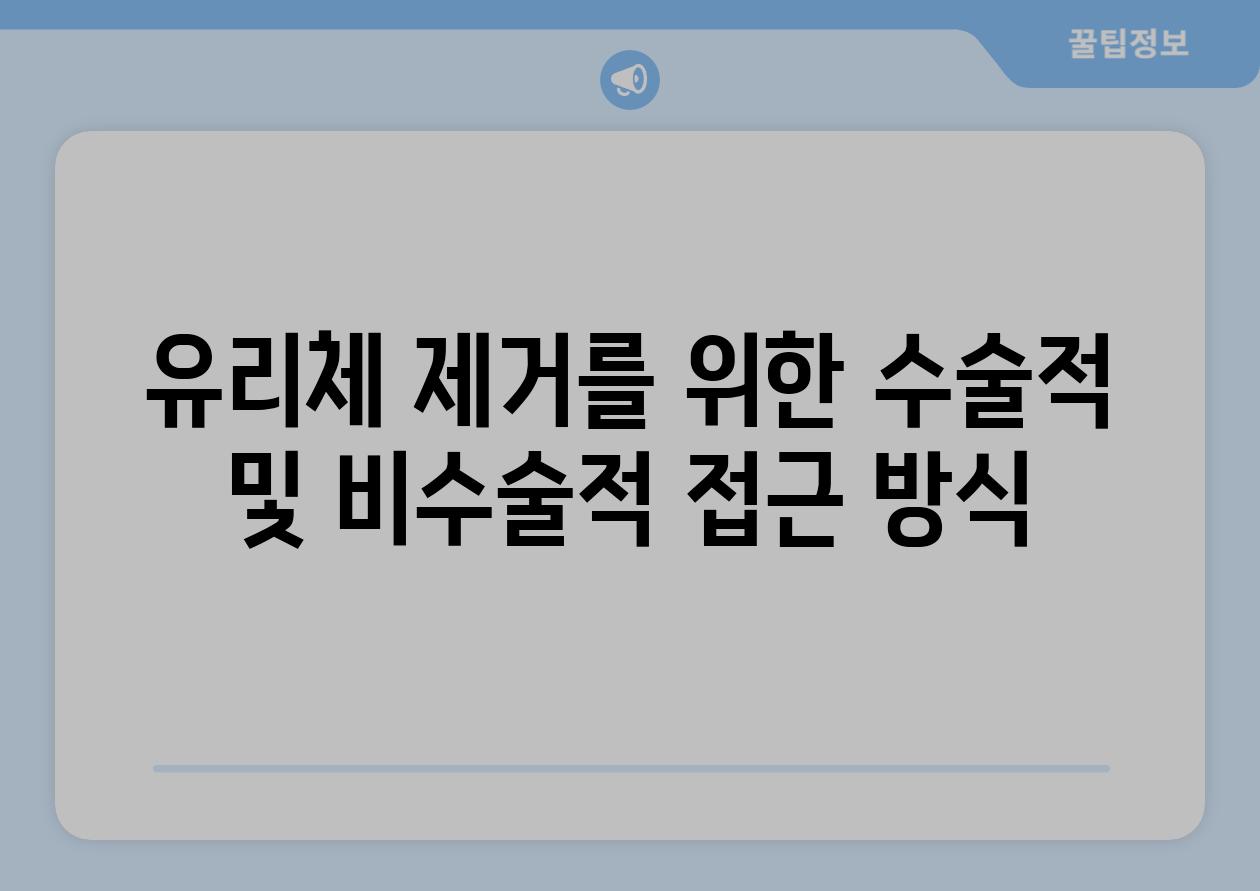 유리체 제거를 위한 접근 방식은 유리체의 크기, 위치, 심각성에 따라 달라집니다. 수술 및 비수술적 옵션은 다음과 같습니다.