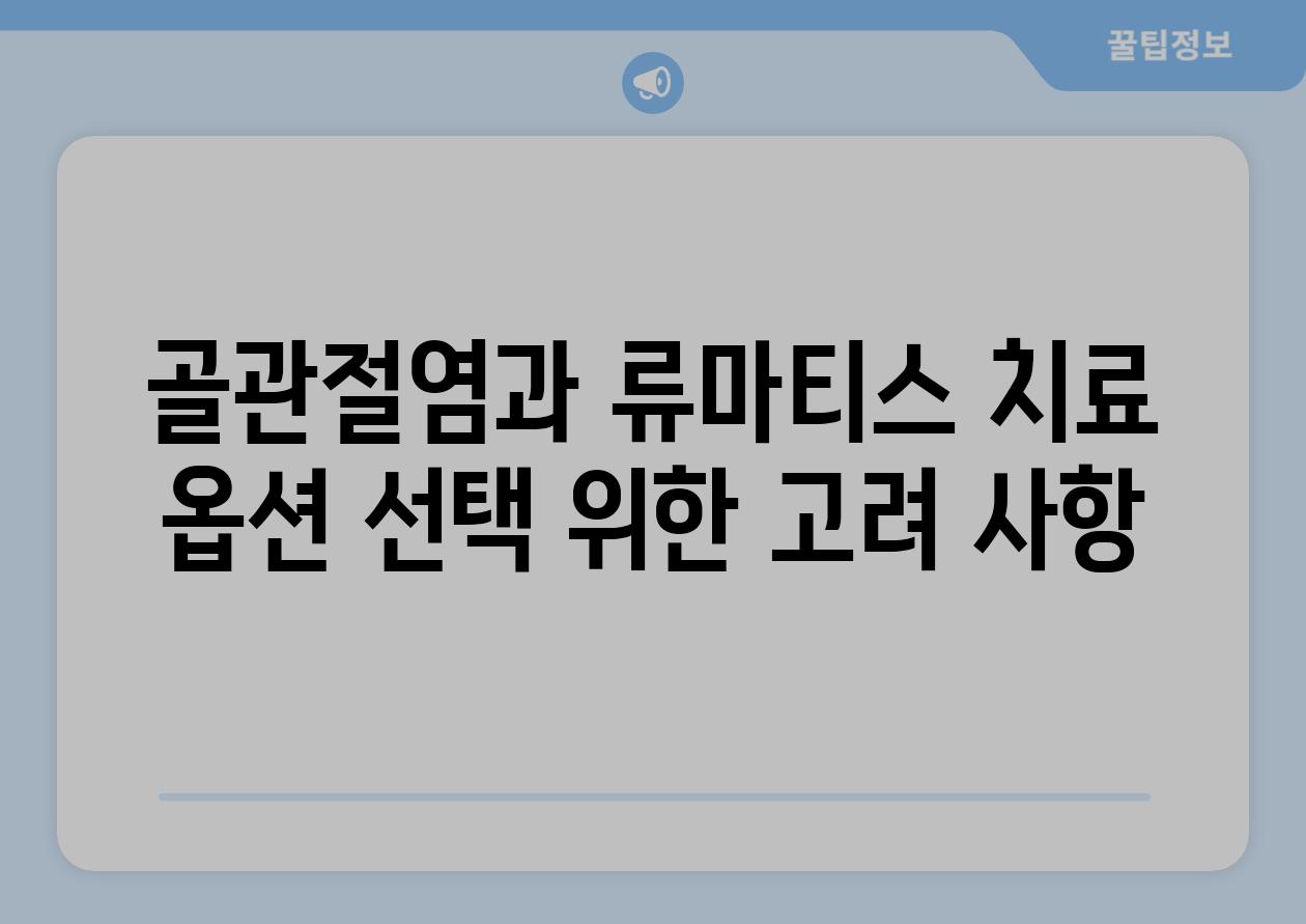 | 골관절염과 류마티스 치료 옵션 선택 위한 고려 사항 |