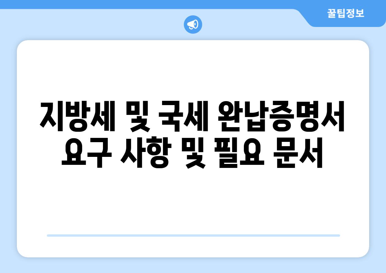 지방세 및 국세 완납증명서를 발급받으려면 다음과 같은 요구 사항과 문서를 준비해야 합니다.