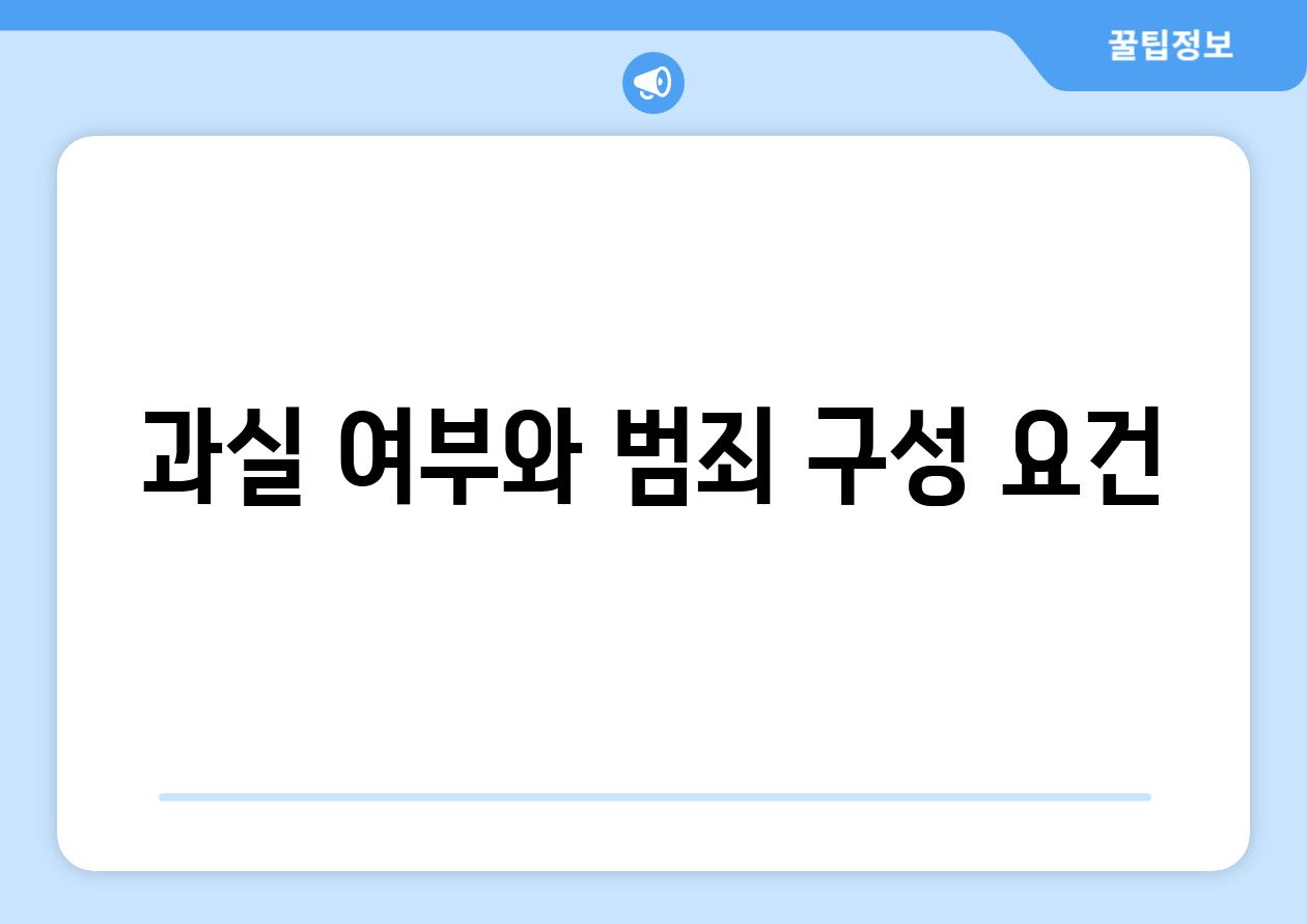 두 번째는 범죄 구성 조건입니다. 범죄 구성 조건은 특정 행위를 범죄로 구성하는 요소들을 말하며, 특정 범죄의 경우 필요한 구성 조건이 각기 다릅니다. 교통사고와 관련된 형사처벌의 경우, 일반적으로 과실치사상, 과실중상, 교통사고치사상해 등의 범죄가 적용됩니다. 이러한 범죄를 구성하려면 피해자가 사망하거나 중상을 입었고, 당사자의 과실 행위와 피해자의 사망 또는 중상 결과 사이에 인과관계가 인정되어야 합니다.