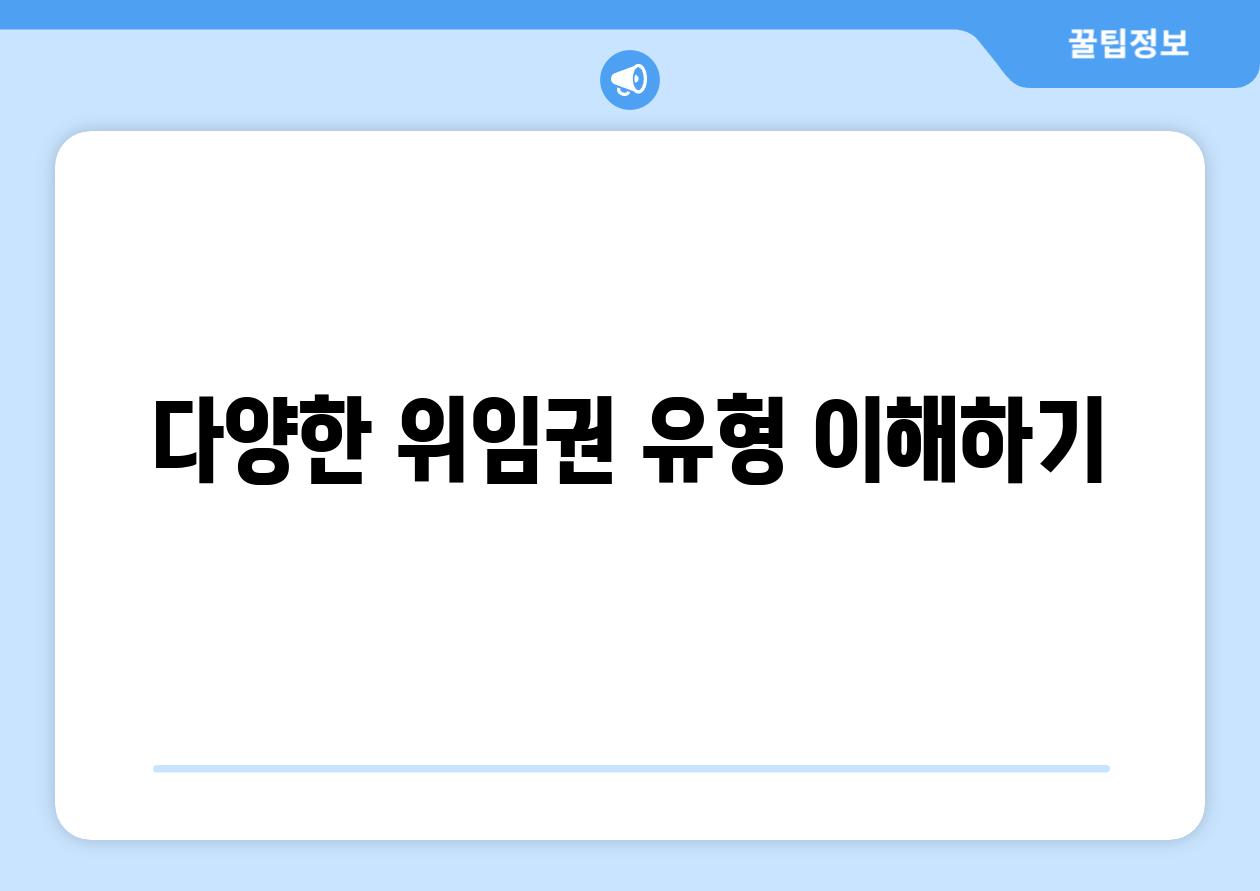 해당 위임장에 정의된 권한의 범위는 위임권 유형에 따라 달라집니다. 일반적인 위임권 유형은 다음과 같습니다.
