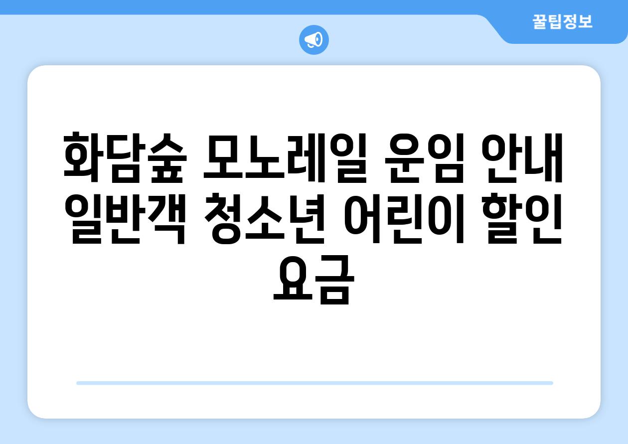 | 화담숲 모노레일 운임 공지 일반객, 청소년, 어린이 할인 요금 |