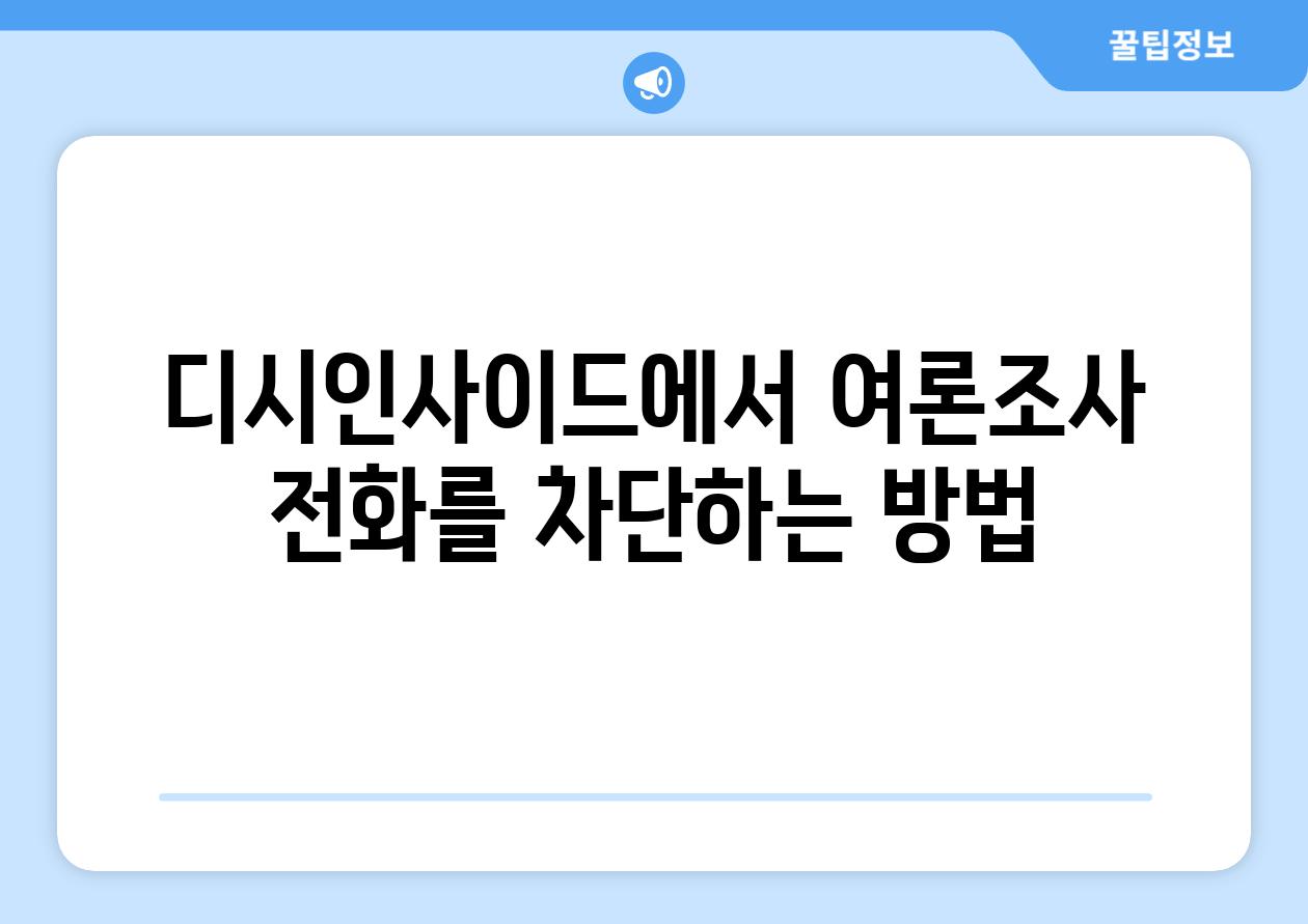 | 국번 차단 | 특정 국번에서 오는 여론조사 📞전화를 차단하려면 디시인사이드 앱에서 '설정' > '통화 차단' > '목록' 항목으로 이동하여 국번을 입력 |
