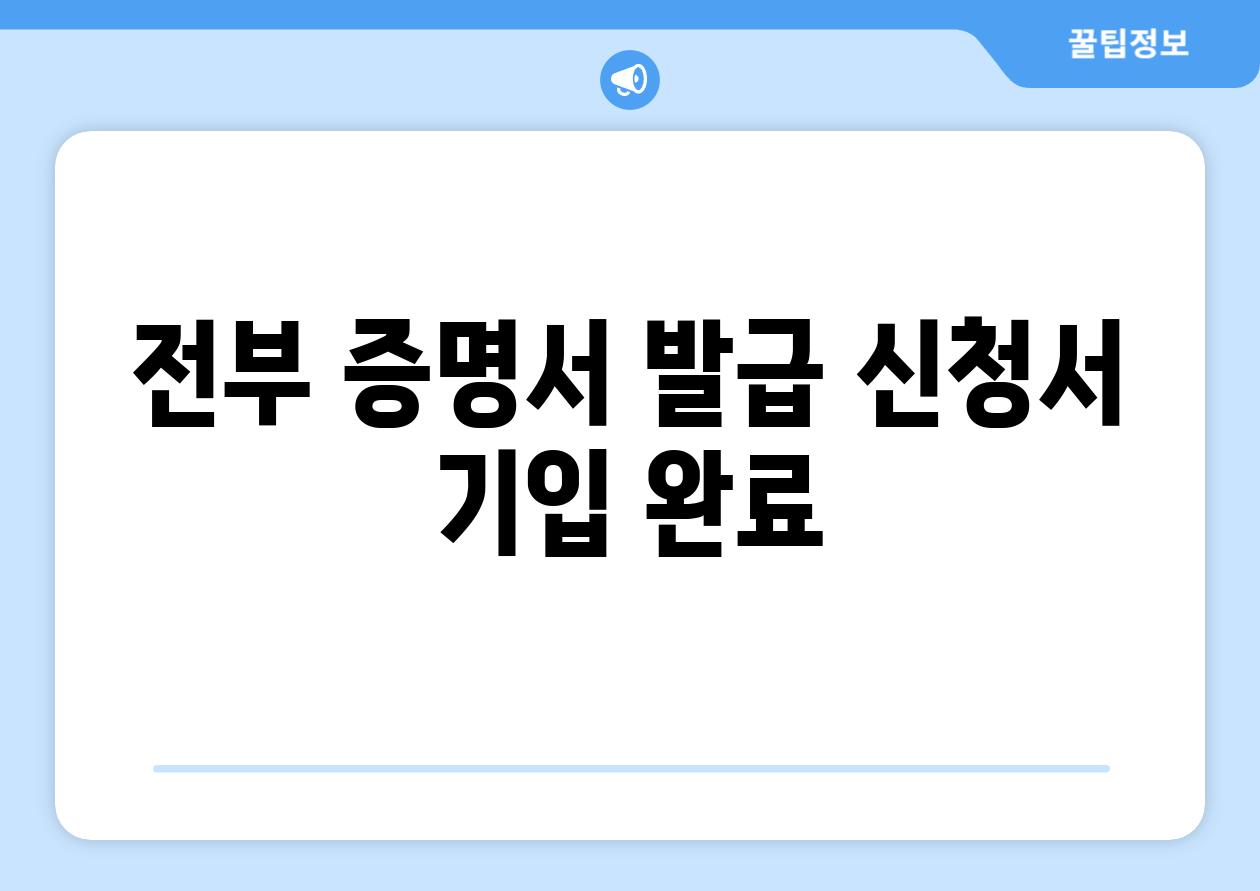 전부 증명서 발급 신청서 기입 완료