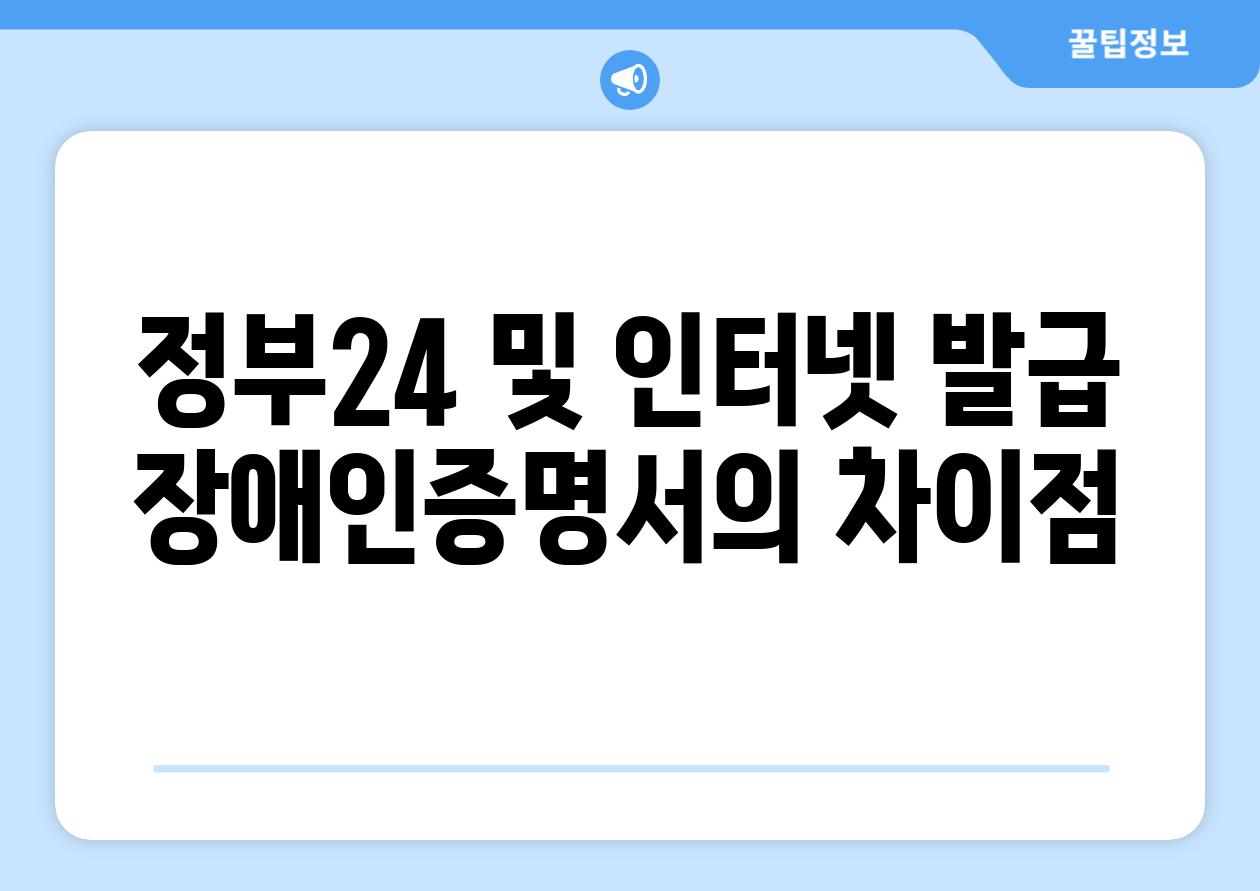 Q 정부24와 인터넷에서 발급하는 장애인증명서 간의 주요 차장점은 무엇입니까?