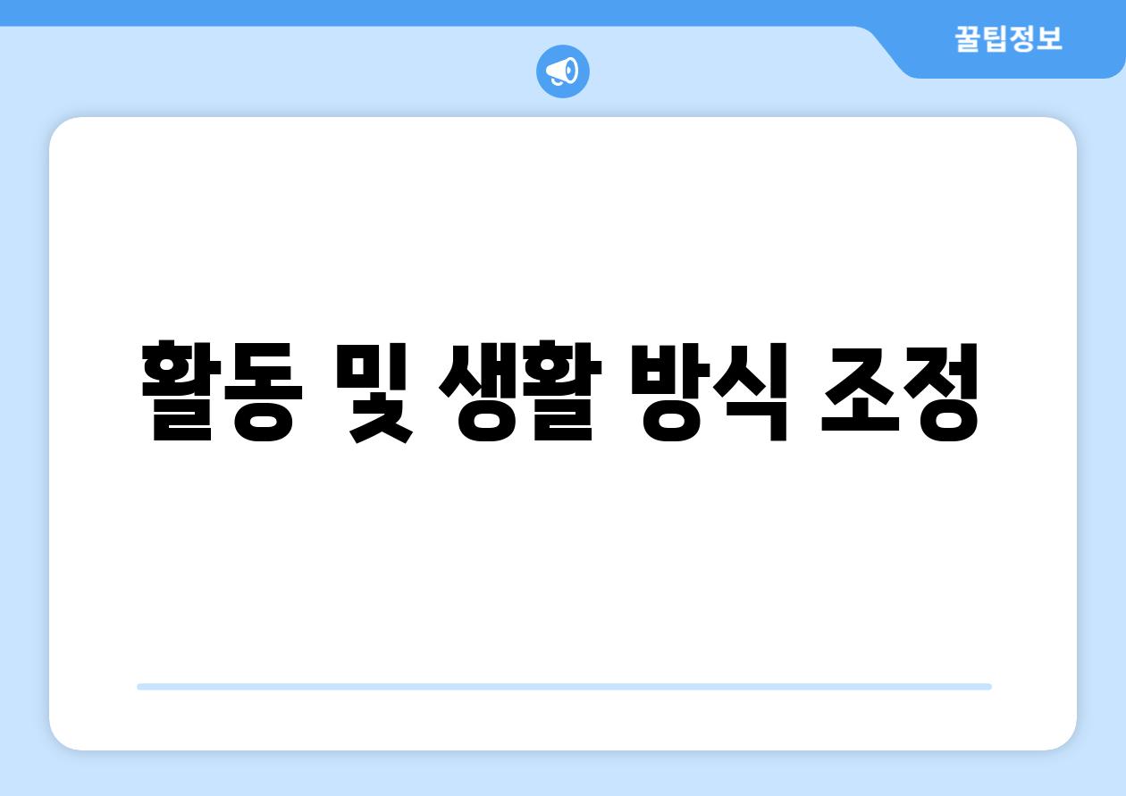 - 관리 가능한 활동부터 시작하기 서서히 낮은 영향의 활동(예 걷기, 자전거 타기, 수영)으로 돌아가십시오. 통증이 없는 범위 내에서만 활동하고, 점진적으로 강도와 지속 시간을 늘리십시오.