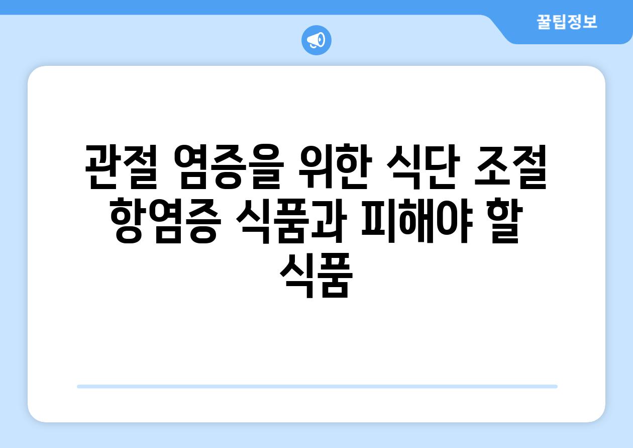 | 관절 염증을 위한 식단 조절 항염증 식품과 피해야 할 식품 |