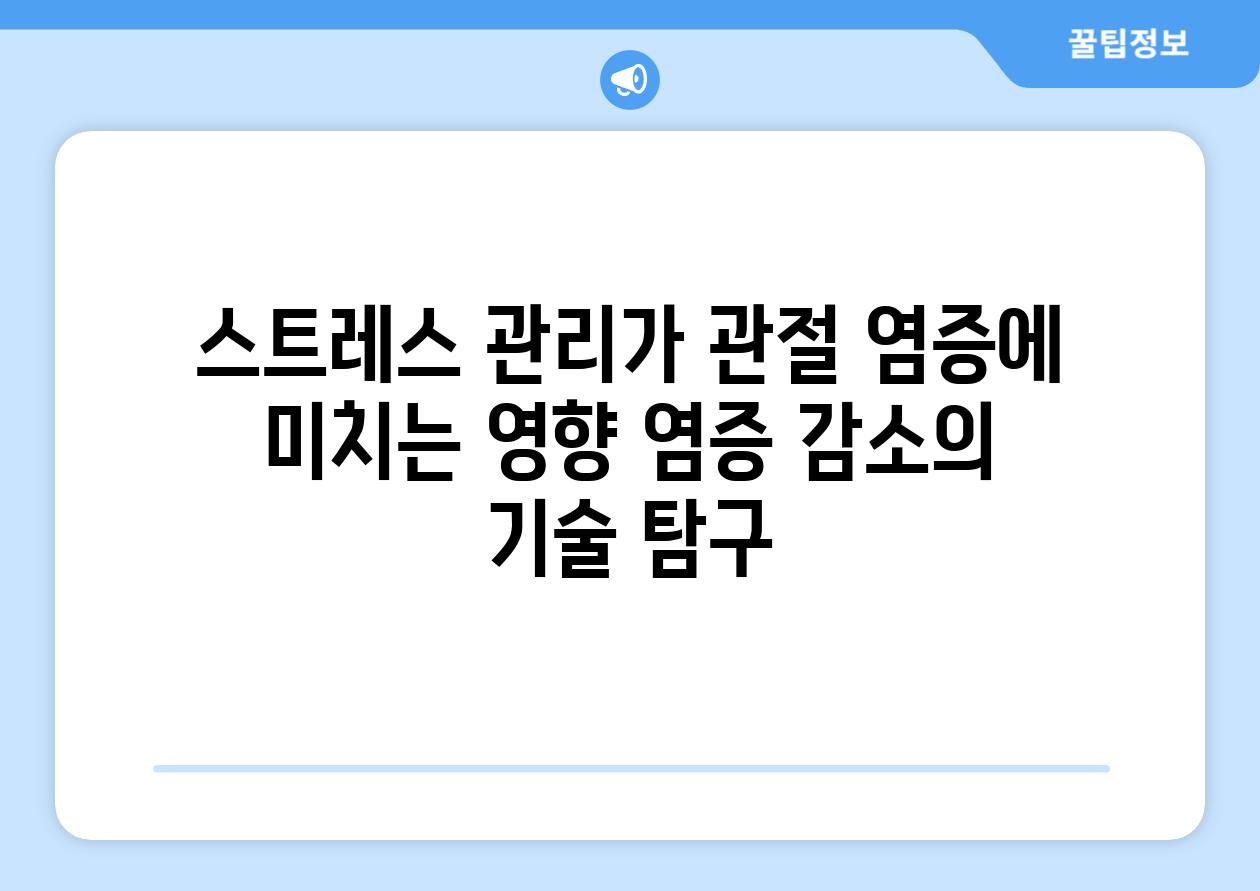 | 스트레스 관리가 관절 염증에 미치는 영향 염증 감소의 기술 비교 |