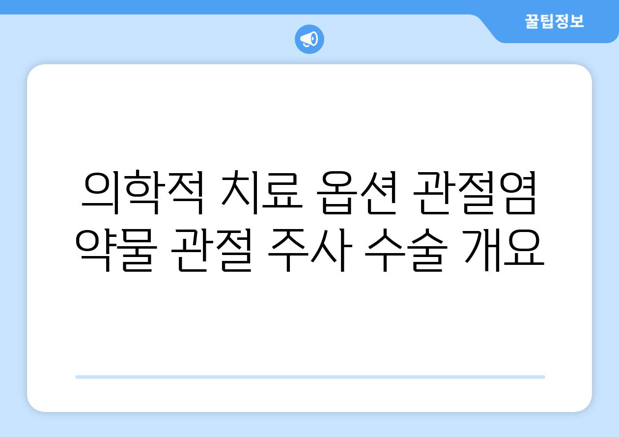 | 의학적 치료 옵션 관절염 약물, 관절 주사, 수술 개요 |