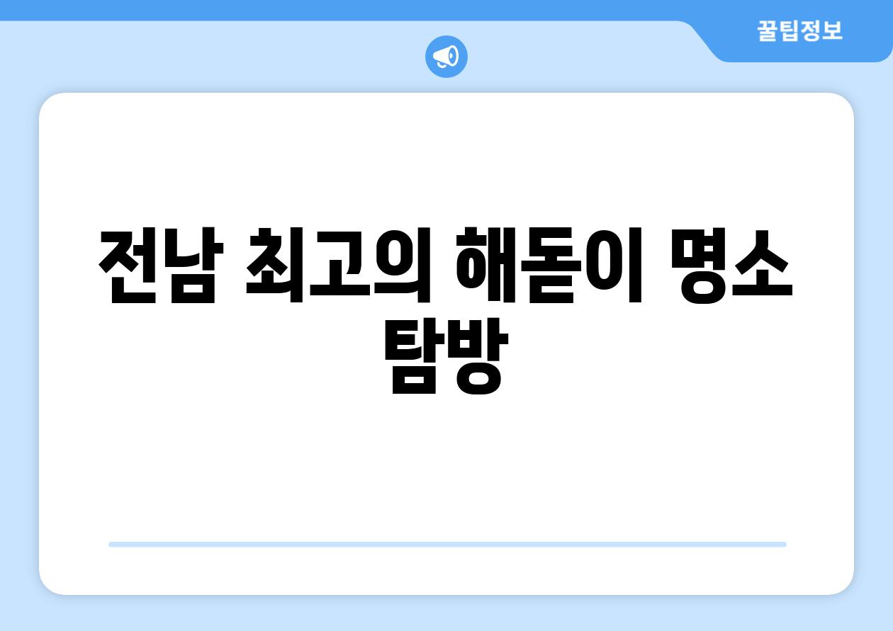 전남 남해안은 탁 트인 해안선과 숨 막히는 해돋이 경관으로 유명합니다. 잊지 못할 해돋이 경험을 원한다면 다음 장소를 방문해 보시기 바랍니다.