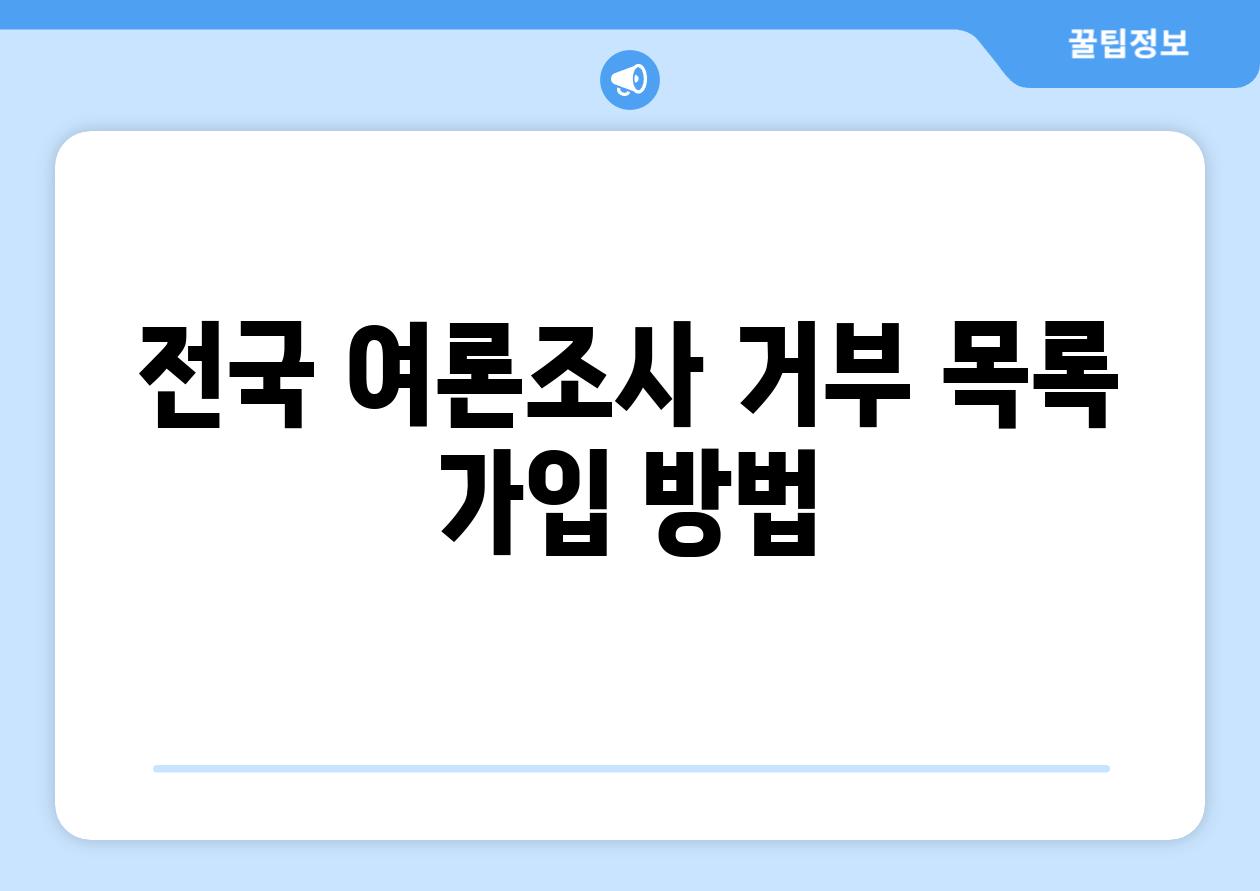 여론조사가 귀찮은 경우 전국 여론조사 거부 목록(National Do Not Call Registry)에 가입하여 불필요한 📞전화를 차단할 수 있습니다. 이 목록에 등록하면 📞전화 통화 요원이 마케팅이나 여론 조사 목적으로 등록된 📞전화번호로 📞전화를 걸 수 없습니다.