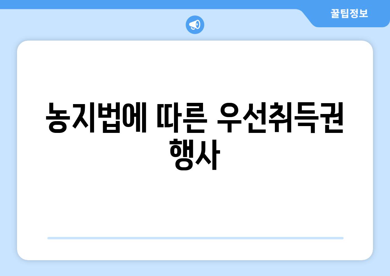 농지법에는 농지의 우선취득권 행사에 관한 규정이 있습니다. 농지법 제29조 제1항에 따르면 다음과 같은 경우에는 농지취득자격증명 없이도 농지를 우선취득할 수 있습니다.