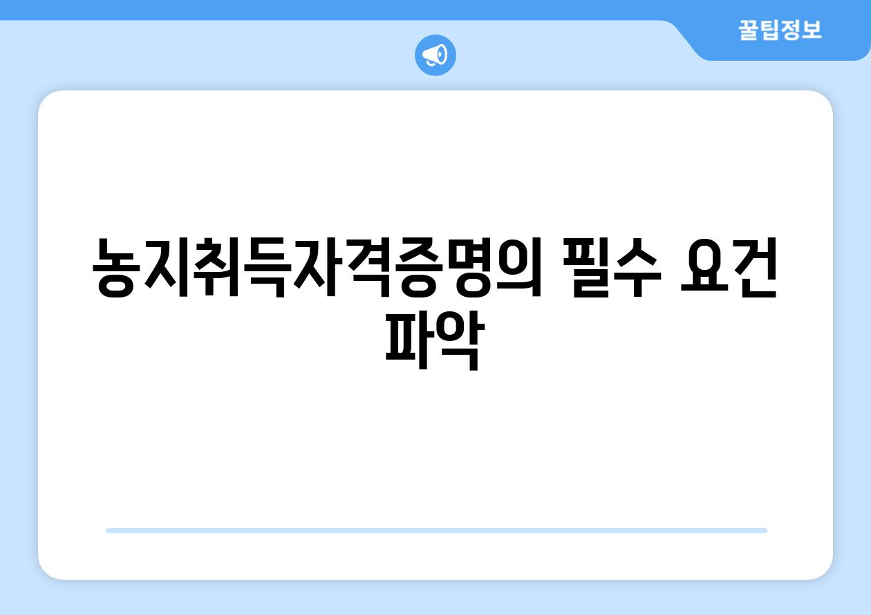 농지취득자격증명 발급을 위한 필수 조건은 농업경영에 필요한 자격과 경험을 갖춘 것으로 확인하는 것입니다. 이러한 조건에는 다음이 포함됩니다.