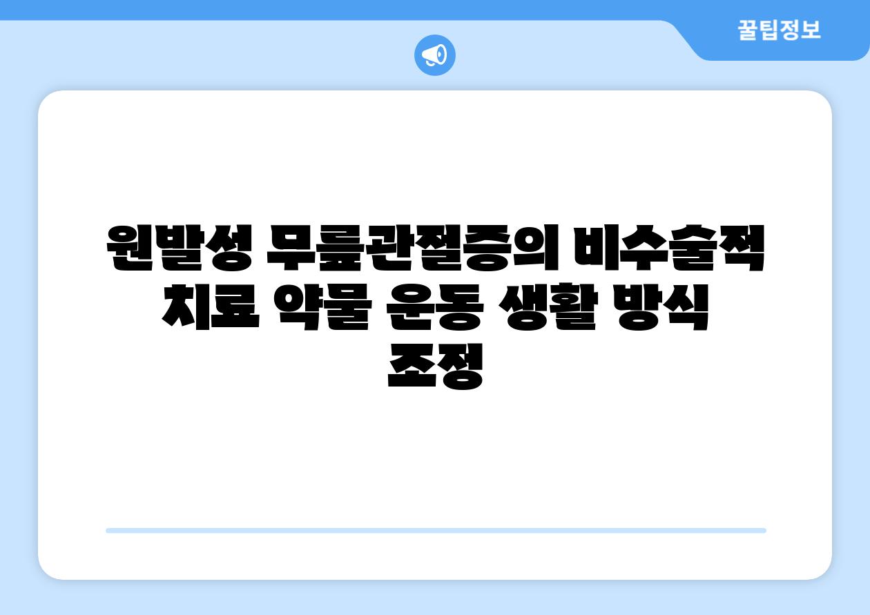 | 원발성 무릎관절증의 비수술적 치료 약물, 운동, 생활 방식 조정 |