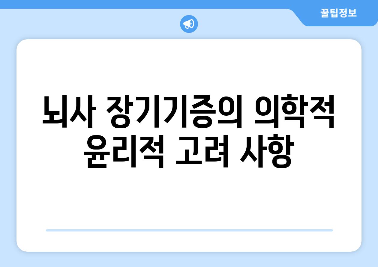 | 뇌사 장기기증의 의학적, 윤리적 고려 사항 |