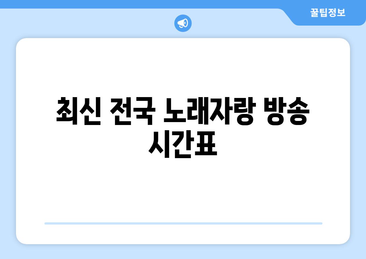 전국 노래자랑은 매주 수요일 저녁 8시 30분에 MBC TV에서 방송됩니다. 자세한 시간표는 다음과 같습니다.