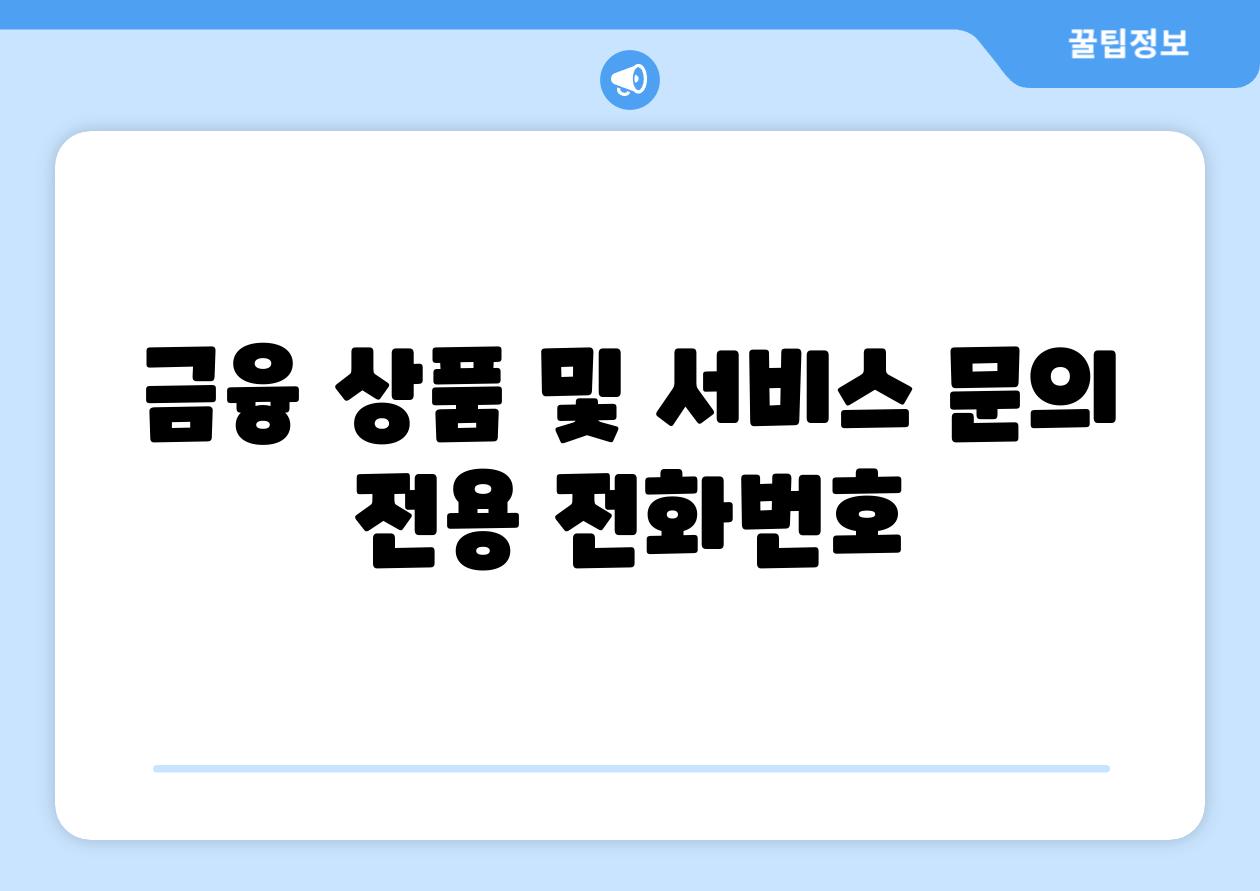금융 상품 및 서비스에 대한 구체적인 문의 사항이 있는 경우 다음 전용 전화번호를 이용하세요.
