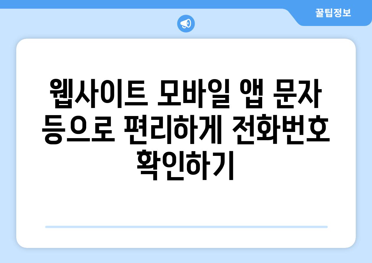 | 웹사이트, 모바일 앱, 문자 등으로 편리하게 📞전화번호 확인하기 |