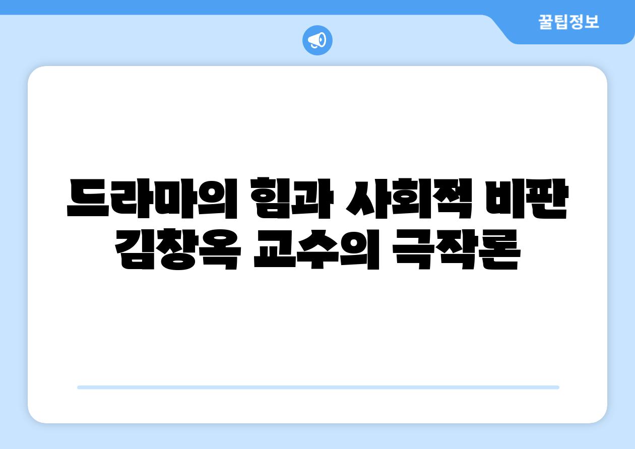 | 드라마의 힘과 사회적 비판 김창옥 교수의 극작론 |