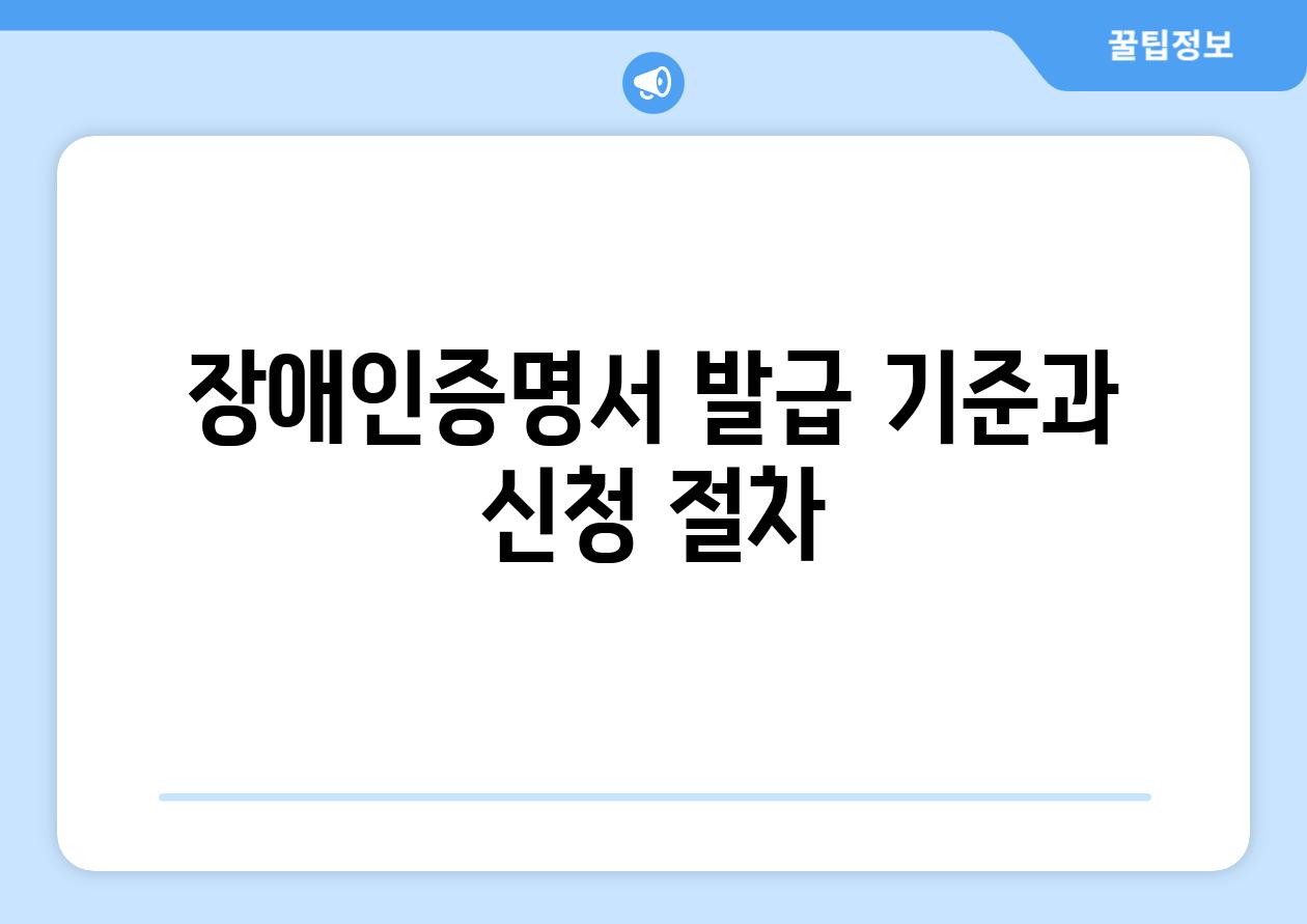 "장애인증명서 신청은 지역 복지관 또는 시/군/구청에 방문하여 신청서를 제출하고 검사를 받아야 합니다. 발급 기준은 장애인복지법에서 정해져 있습니다." - 국민권익위원회