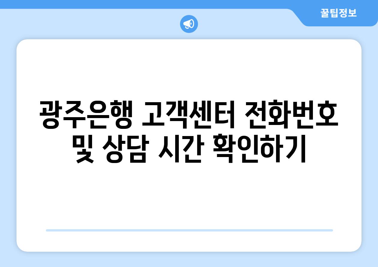 | 광주은행 고객센터 📞전화 상담 시 유의사항 및 팁 알아보기 |