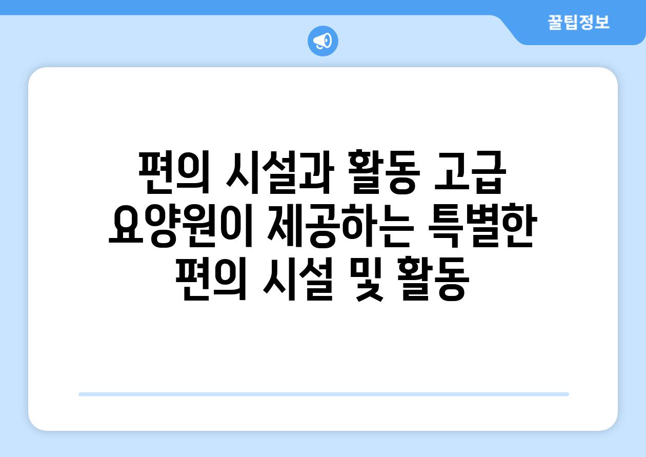| 편의 시설과 활동 고급 요양원이 제공하는 특별한 편의 시설 및 활동 |