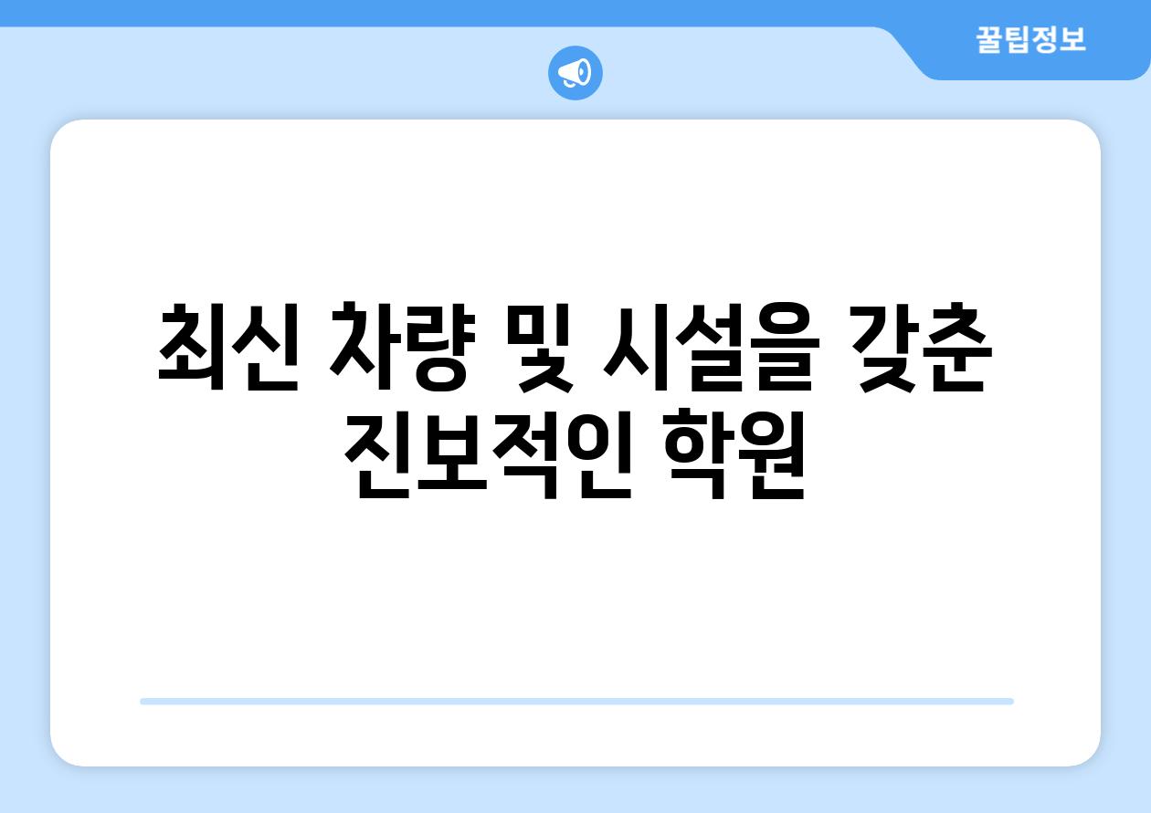 최신 차량 및 시설을 갖춘 진보적인 학원